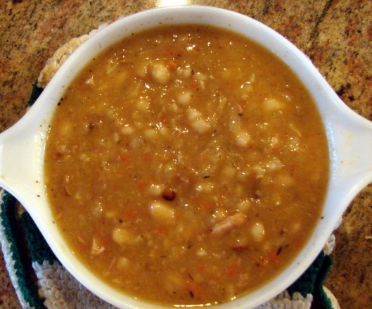 Today, as I was considering ways to use my leftover Navy Bean Soup, I remembered my Aunt Daisy’s simple recipe for a faux cassoulet. Pulled together in minutes — with a can of Grandma Brown’s Baked Beans and a little chopped onion, garlic, bacon and brown sugar — Aunt Daisy never called her dish cassoulet; it was just baked beans. Being of Canadian French descent, I imagine Aunt Daisy wouldn’t have presumed to confuse hers with the real deal.